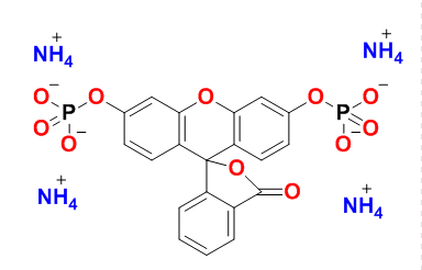 FDP [熒光素二磷酸酯四銨鹽],該產(chǎn)品在與磷酸酶相互作用后,無(wú)色和非熒光FDP被水解成高熒光熒光素,其表現(xiàn)出優(yōu)異的光譜特性,與配備有氬激光激發(fā)的大多數(shù)熒光儀器的最佳檢測(cè)相匹配?;蛘?,F(xiàn)DP也可用于檢測(cè)發(fā)色模式中的磷酸酶,因?yàn)槊府a(chǎn)物(熒光素)表現(xiàn)出很大的消光系數(shù)(接近100,000cm-1mol-1)。在一些文獻(xiàn)中,F(xiàn)DP被認(rèn)為是最敏感的熒光磷酸酶底物之一。FDP已廣泛用于各種ELISA測(cè)定。此外,它還用于檢測(cè)酪氨酸磷酸酶。FDP是熱不穩(wěn)定的,需要特別注意保存固體樣品和儲(chǔ)備溶液。